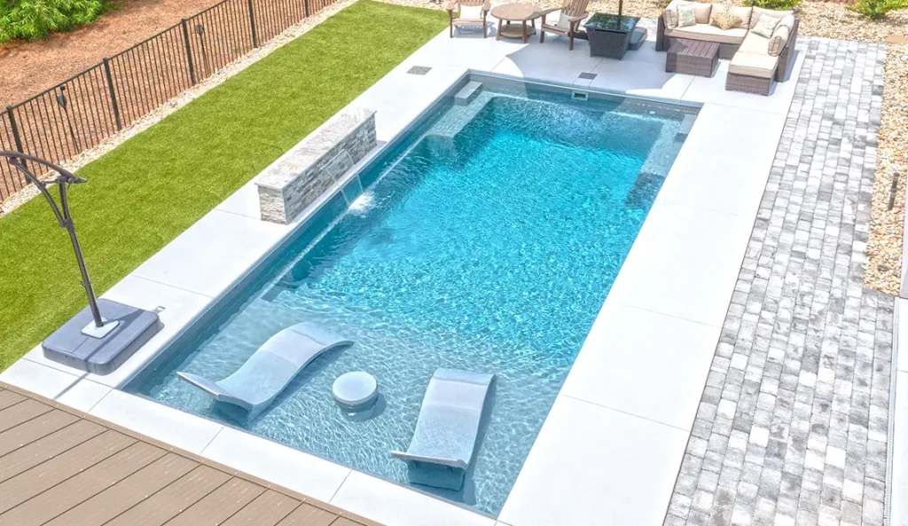 We anchor our turnkey backyard transformations with world-class fiberglass pools.